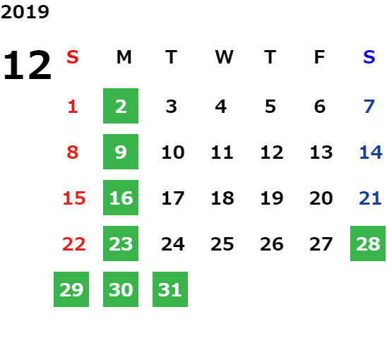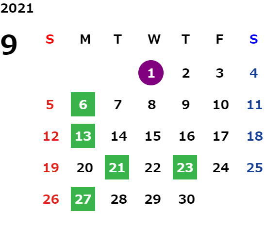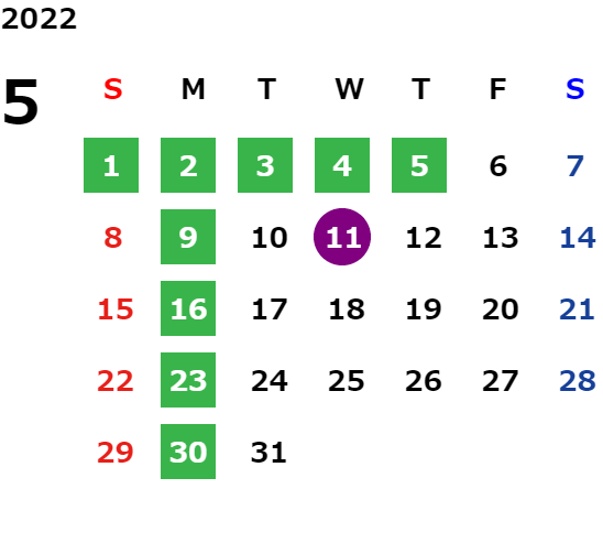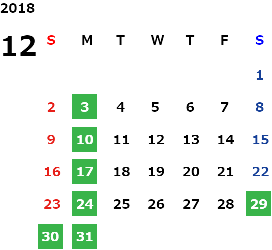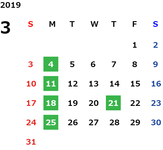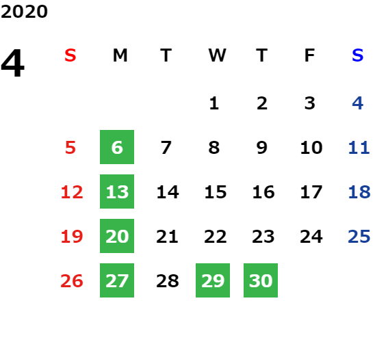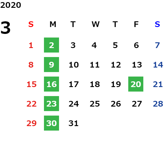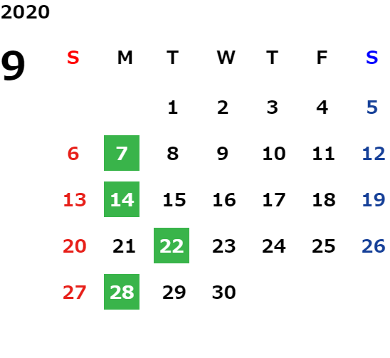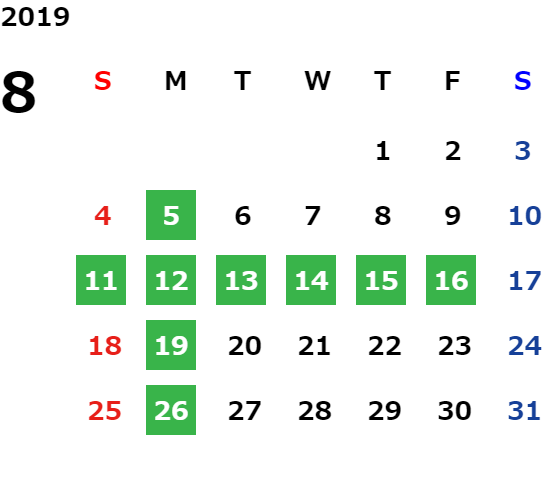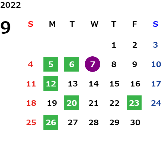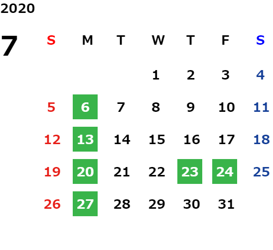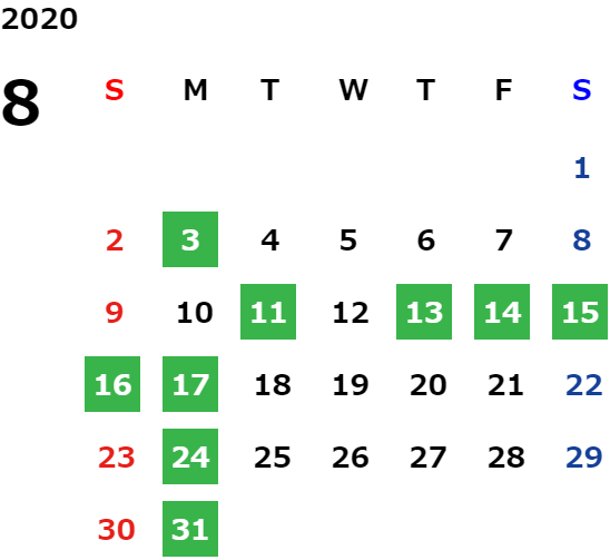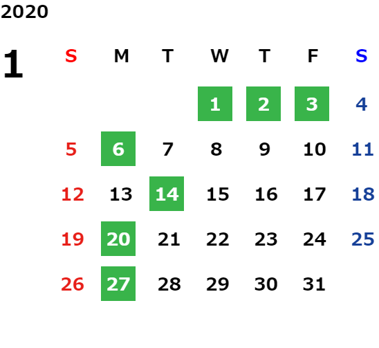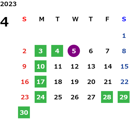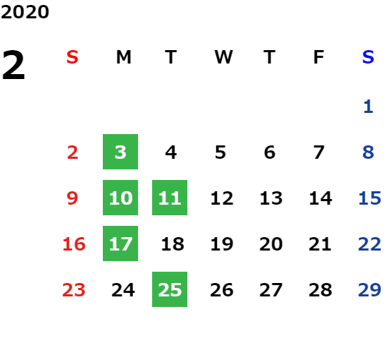 営業日カレンダー