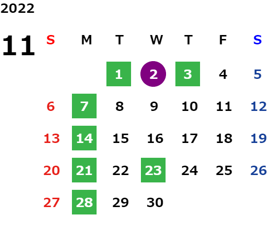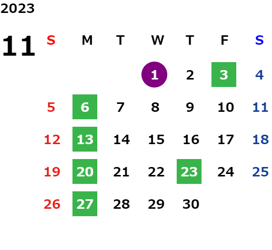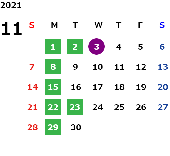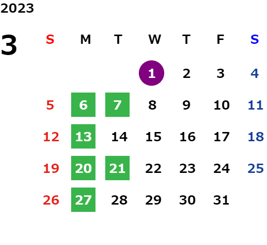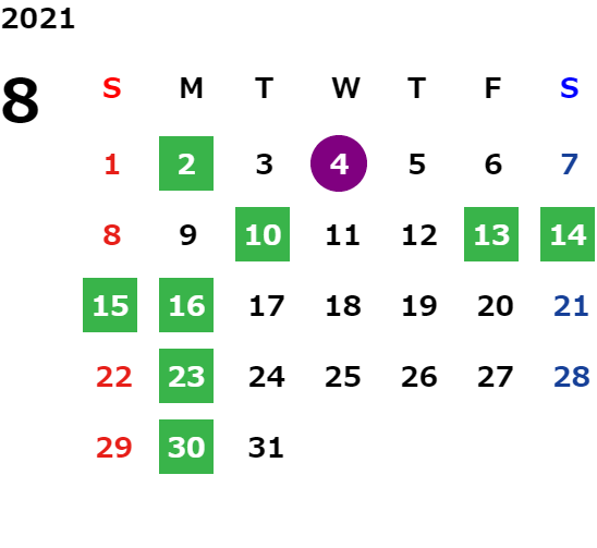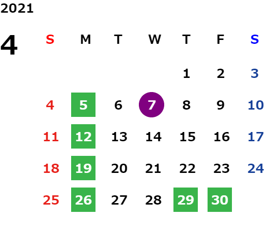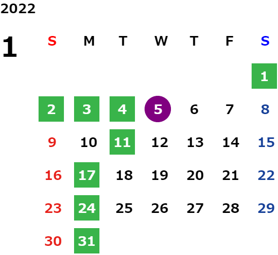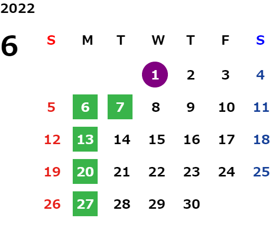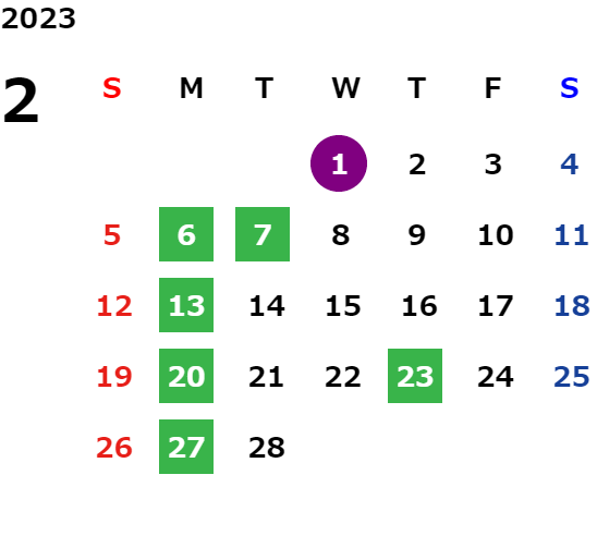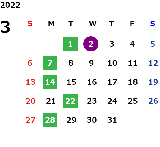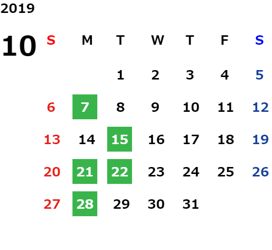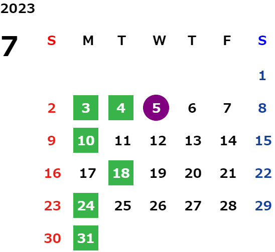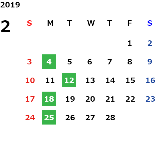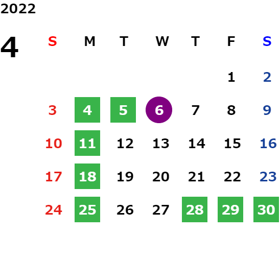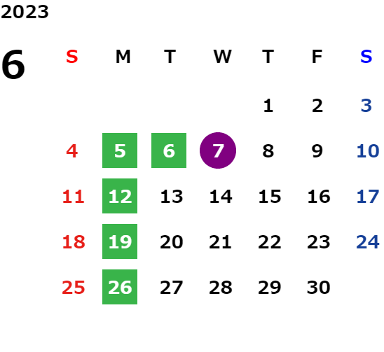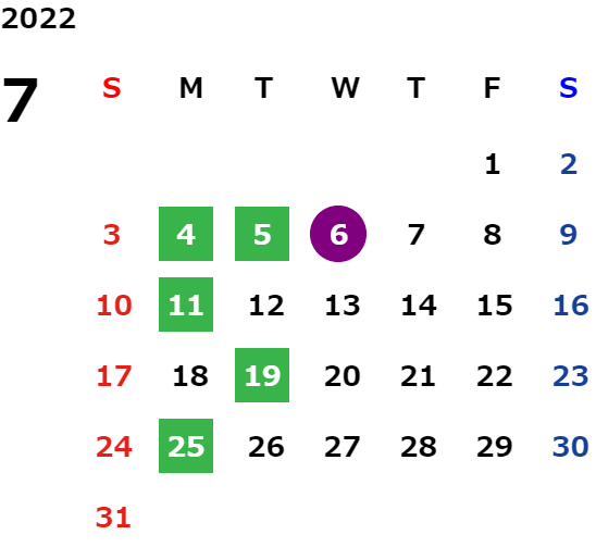 営業日カレンダー