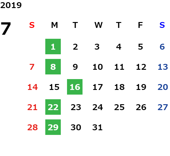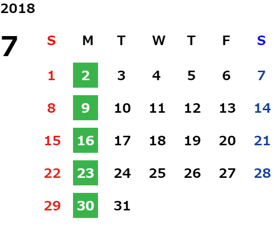 毎週月曜日