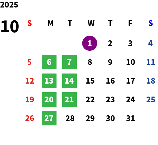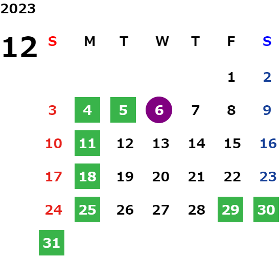 2025年12月以降の休業日等は追って更新いたします。